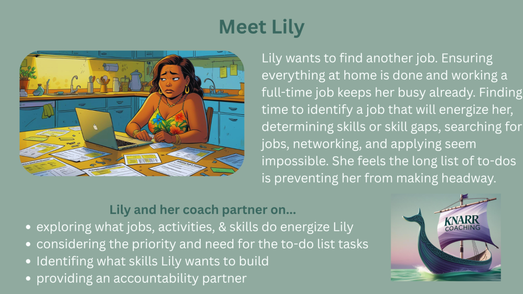 To illustrate how Knarr Coaching can benefit you, below are six fictional client scenarios illustrating some of the issues leading to Client/Coach partnership.